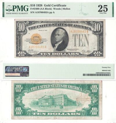 Starting in 1928, the United States began issuing its currency in a reduced size format. People were using new-fangled "wallets," and the large size notes just didn't fit in them well. Small size notes came with many different colored seals and serial numbers, each reflecting a different type of issue: Silver Certificates were blue, Gold Certificates were gold, and Legal Tender Notes were red.